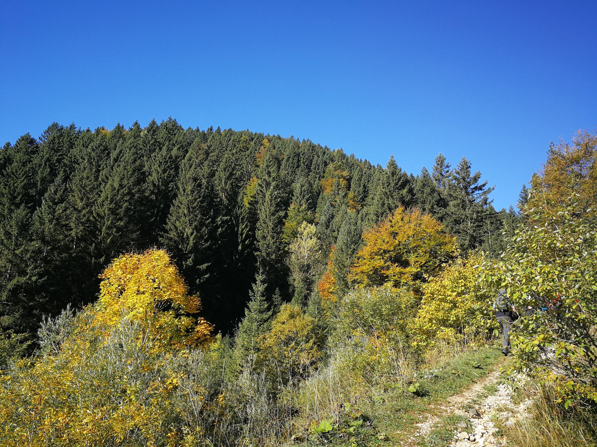 A metà Ottobre la media montagna regala ancora qualche tepore e già un annuncio della grande doratura autunnale.