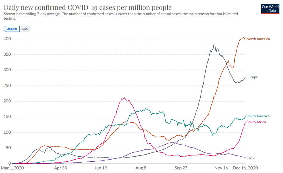 Insomma, la malattia si è rivelata fortemente contagiosa, anche in presenza di misure di contenimento di intensità medio-alta. E la stagione invernale, usuale periodo di malattie respiratorie, è appena cominciata: dopo questa "pausa" di fine anno, è facile che si assisterà ad una ulteriore ripresa generalizzata dei contagi, forse anche in Cina, ma fortunatamente con sempre maggior conoscenza di come gestire la situazione, sia dal punto di vista della prevenzione che da quello della cura, e anche prescindendo dai vaccini, che, purtroppo, cominceranno a influire non prima di diversi mesi.